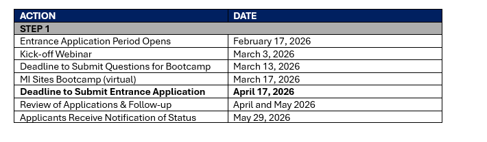 Timeline for MI Sites: Step 1