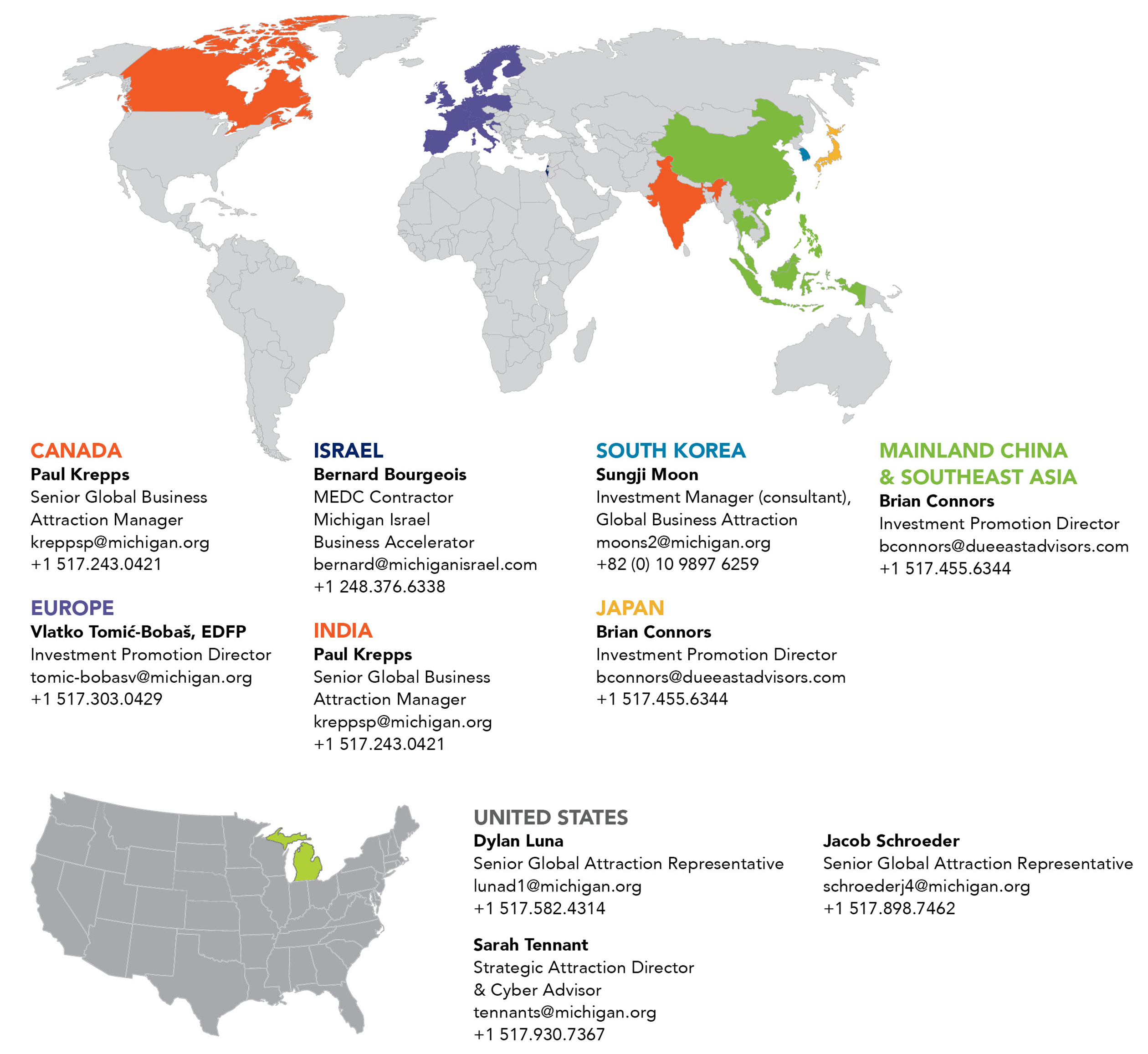 Use the information provided below to contact the foreign direct investment team at MEDC.