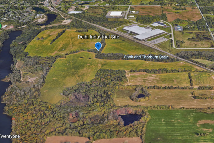 Undeveloped site zoned and master planned for industrial use located in the City of Corunna.