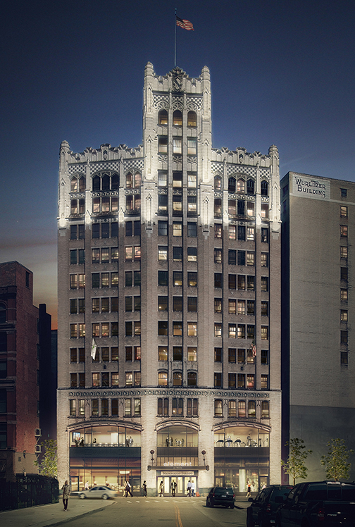 The restoration of the historic, 98,000-square-foot Metropolitan Building introduces a mixed-use, extended-stay 110-room hotel