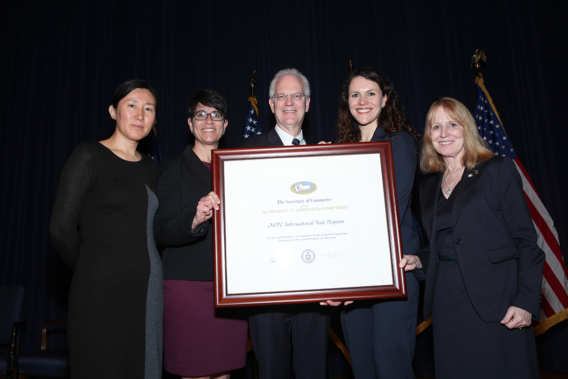 The “E” Awards Committee noted MEDC’s collaborative work with strategic partners to educate Michigan exporters. The office’s sponsorship of more than 40 trade missions since 2012 was also particularly notable. MEDC’s achievements have contributed to national export expansion efforts that support the U.S. economy and create American jobs.”