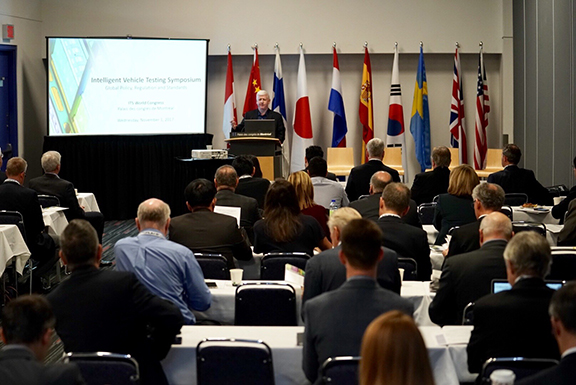 Symposium topics included aligning global policy, regulations and standards to help accelerate worldwide implementation of connected-and-automated vehicle (CAV) technologies.