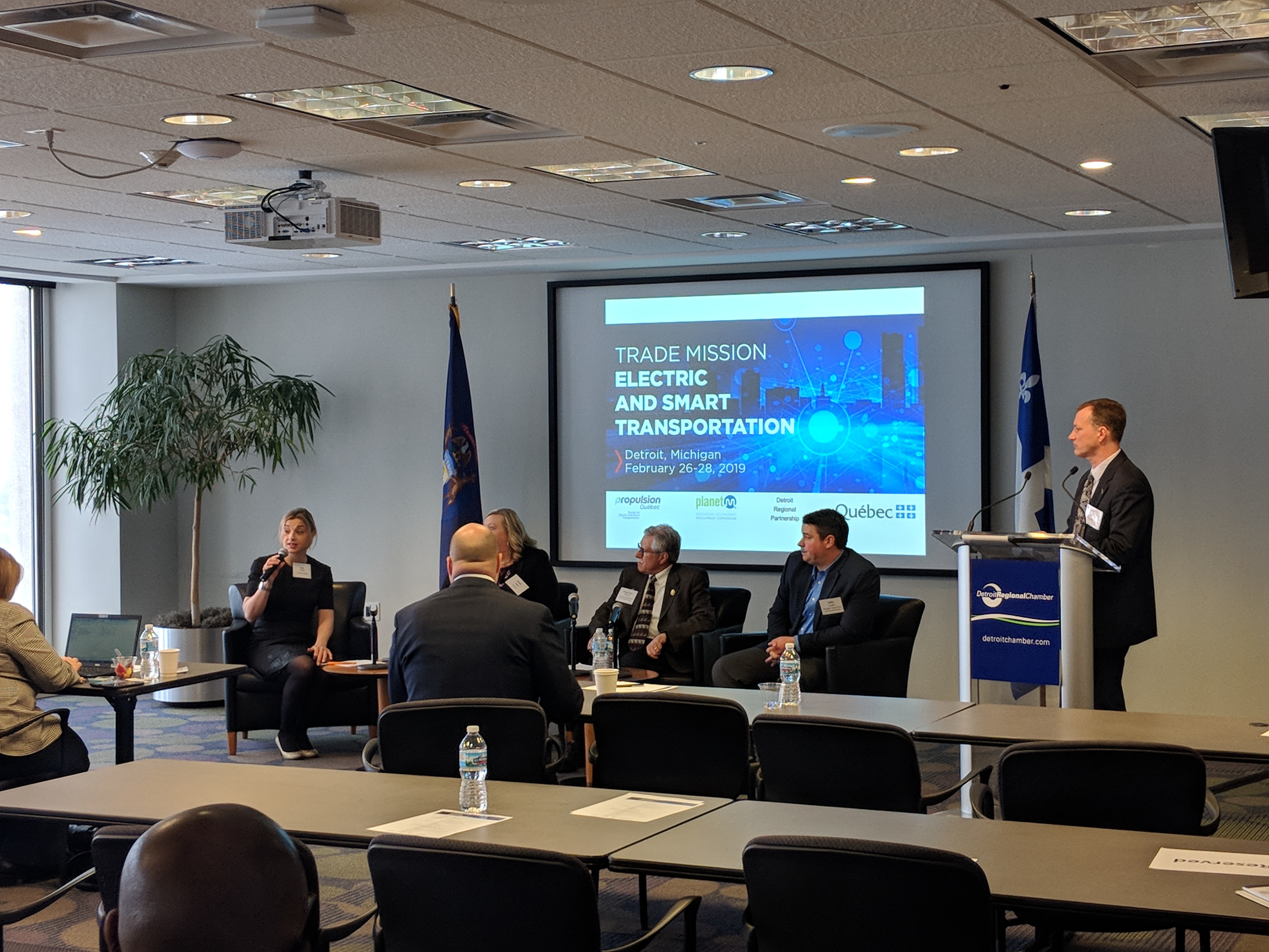 Across the globe, public and private sector partners are working to identify and react to evolutions in transportation and advances in mobility. Putting the importance of collaboration at the forefront of this next transportation revolution, a delegation from Quebec recently came to Michigan to discuss how strengthening ties between Michigan and Canada can advance the opportunities to attract and grow new technologies and industries that will develop the future of mobility. The delegation included Nadine Girault, the Minister of International Relations and La Francophonie, Eric Marquis, Deputy Under Minister for the United States, Sarah Houde, CEO of Propulsion Quebec and Economic Affairs Attache for Transportation, Cyril Gauchet as well representatives from seven Quebec-based companies.