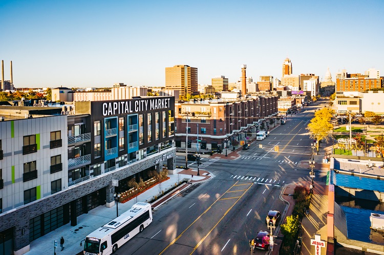 The Capital City Market is featured as part of the Block600 Development project, as a plan to redevelop more than four acres of blighted, contaminated property in the downtown corridor of Michigan’s capital city. By creating a new four-story, mixed-use building, the project offers an affordable urban grocery market - the Capital City Market - in what had previously been a food desert in downtown Lansing. Operated by Meijer, the market itself is designed with an open-air atmosphere and offers both fresh and frozen food, a coffee shop, and pre-prepared to-go items.