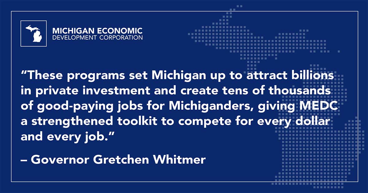As part of this bill package, the new Michigan Strategic Site Readiness program will allow Michigan to create investment-ready sites to attract and spur business growth in Michigan. Additionally, the new Critical Industry Investment program will empower Michigan to make game-changing investments critical to closing deals, create and preserve qualified jobs, and bring significant capital investment into Michigan. Learn more about this legislation here.