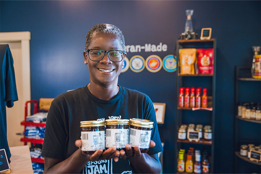 Navy veteran Aiye Akhigbe never dreamed of becoming a small business owner, and it was fate that brought her to Michigan in the first place. As the owner of Sticky Spoons Jam, she has embraced the path of entrepreneurship – and the state’s agricultural offerings. When she makes any of her jam blends, 50% of the fruit must be grown in the state, and her business works with small, family-owned farms in Southwest Michigan.