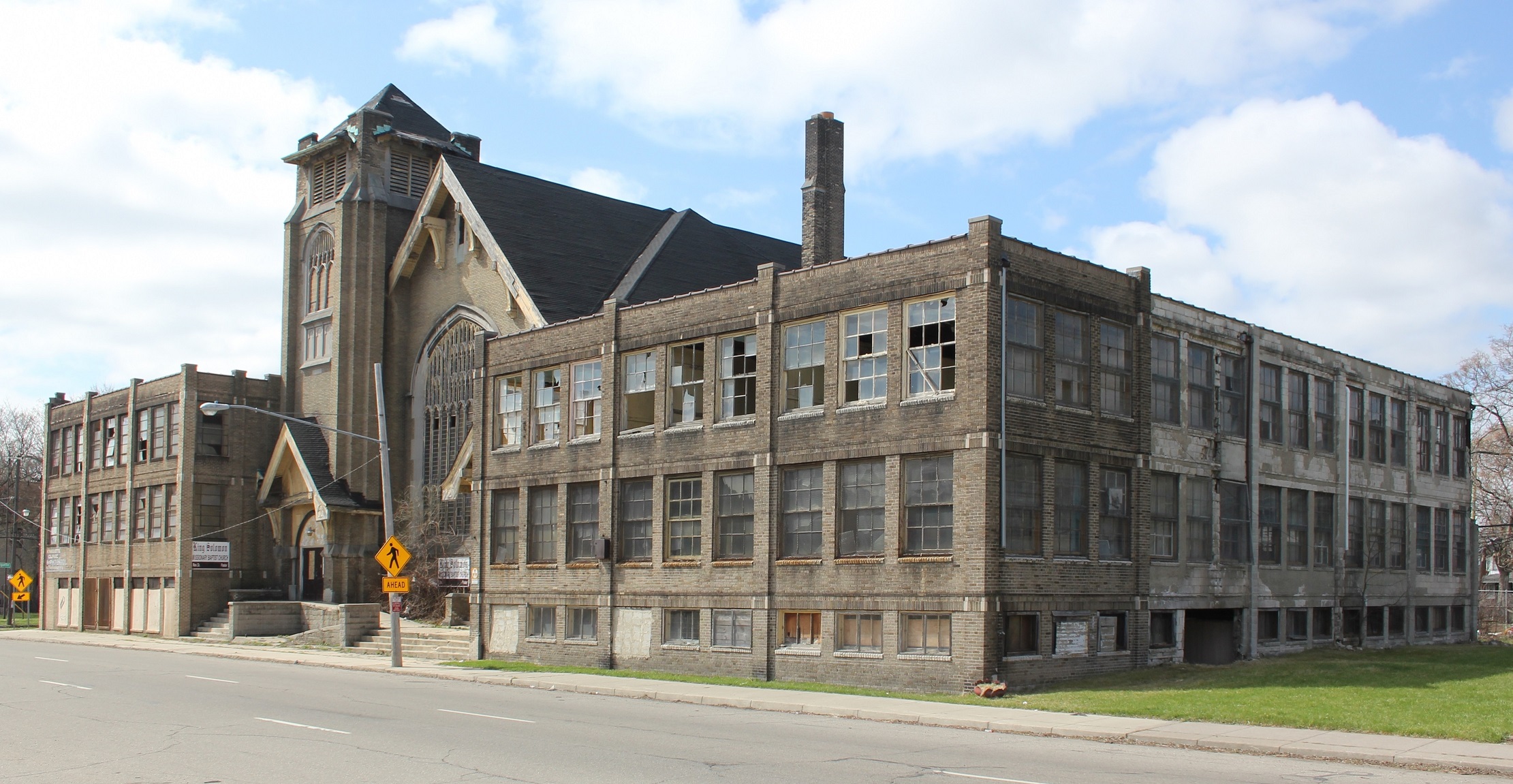 King Solomon Baptist Church, located at 6125 14th Street in Detroit, was built in 1917 for a white Baptist congregation. As the Northwest Goldberg neighborhood evolved from white to black after World War II, it was purchased in 1955 by an African American congregation led by historian and writer Rev. Thomas Boone. The church complex also includes a 5,000-seat auditorium, one of the few places of its size that African Americans could utilize in Detroit in the mid-20th century.