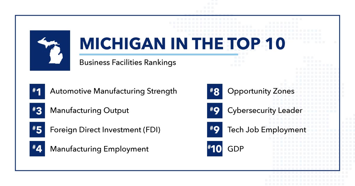 THIS JUST IN: Michigan captures eight top 10 spots in Business Facilities’ annual Rankings Report
