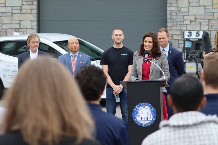 Flint, Michigan - Governor Gretchen Whitmer was joined by state, local and university officials at Kettering University’s GM Mobility Research Center in Flint today to announce the first round of Michigan Mobility Funding Platform grants. Five mobility companies - MUVE, Airspace Link, KUHMUTE, GreenRoute and Michigan Flyer - received more than $444,000 in funding to deploy mobility pilots in Michigan that alleviate mobility barriers and help accelerate electric vehicle adoption.