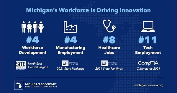 To learn more about Michigan’s competitive strengths against other states, go to michiganbusiness.org/rankings.