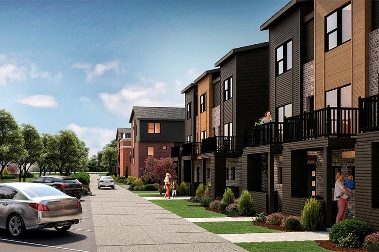 The 1727 Merrick Redevelopment Project will include the construction of three three-story townhome buildings in the Woodbridge neighborhood near downtown Detroit. When completed, the project will consist of 23 for-sale townhomes and public infrastructure improvements including sidewalks, a public pocket park, bike infrastructure, and onsite underground stormwater management system.