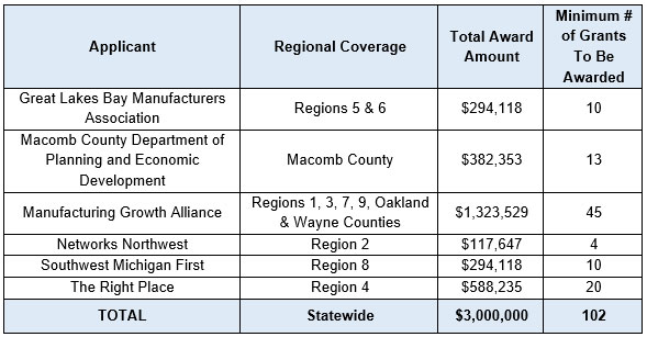 “In order to remain competitive, Michigan will help prepare manufacturers to adopt new and innovative technologies for the future through programs like the Industry 4.0 initiative,” said Quentin L. Messer, Jr., CEO of MEDC and President and Chair of the MSF Board. “By supporting local partners and communities through these regional grants, we are strengthening our state’s leadership in advanced manufacturing and the entrepreneurship and jobs this innovative sector supports for years to come.”