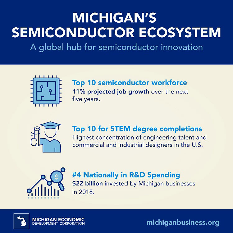 “As global demand for semiconductors continues to grow, Michigan is poised to be at the center of semiconductor and battery manufacturing and R&D efforts nationwide,” said Governor Gretchen Whitmer. “Michigan is one of only three states that will be launching planning work to define curricula to support employers in the semiconductor industry. With this new apprenticeship program, along with our global manufacturing and automotive R&D leadership, we are leading the charge in addressing the universal industry demand for semiconductors while creating good-paying jobs for Michiganders.”