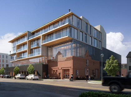 The Coda Brush Park project includes the rehabilitation of an existing single-story building and construction of additions that will result in a five-story, mixed-use development in the Brush Park neighborhood of Detroit. When complete, the project will include a ground-level restaurant and bar, a second-story office and three stories of for-sale condos and integrated parking.