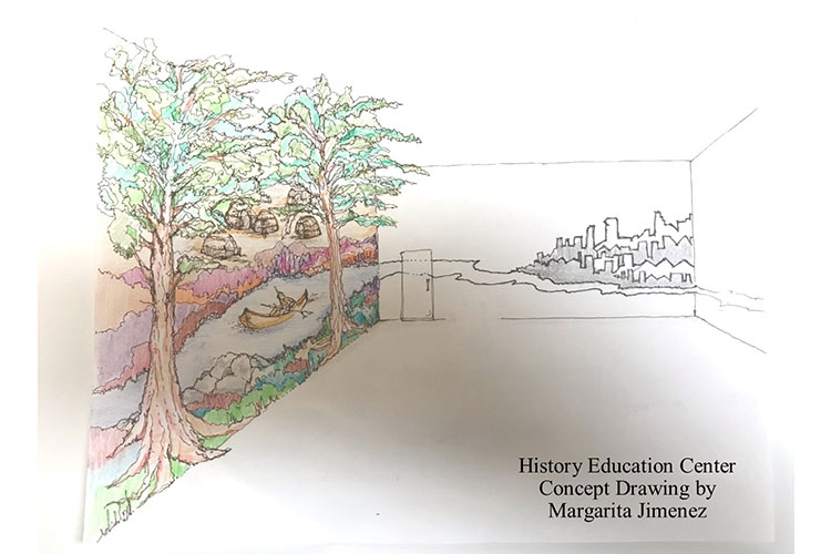 There will be a large-scale mural in the center that will represent the Potawatomi tribe who were the indigenous people in the region when the first settlers arrived. It will be in full color, and the other three walls in the room would feature a photographic tour of the history of Battle Creek. It will include black and white photos of historic landmark buildings, events, and places, as well as portraits of people who shaped the community.