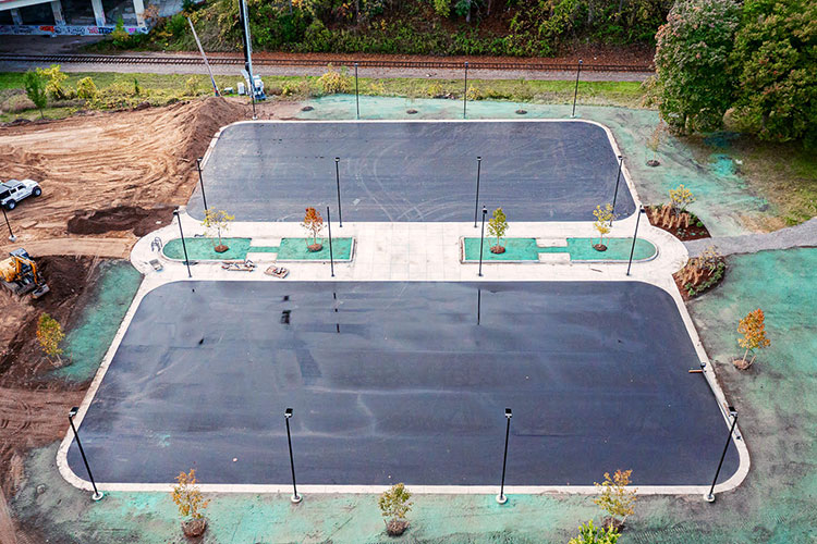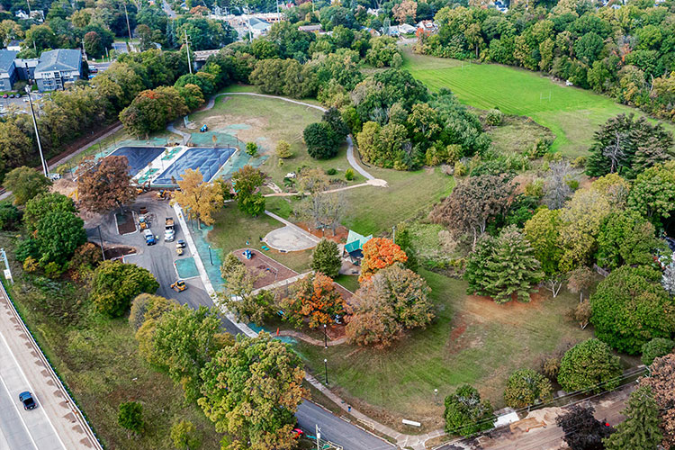 Highland Park is being enhanced as part of the City of Grand Rapids’ Parks and Recreation Strategic Master Plan. A large component of this plan is to activate an underused space within the park by creating two multi-sport courts, providing the community with new access to two outdoor, enclosed areas designed for hockey, bike polo, basketball, soccer, futsal, shuffleboard, and more. The pavement for this new park feature has been poured by city contractors, and all that’s left to complete the space is the dasher boards that surround each court.