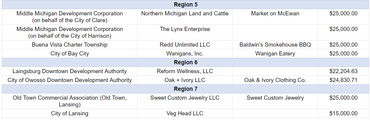 “Michigan’s small businesses are the beating hearts of our main streets and downtowns,” said Governor Whitmer. “Today’s Match on Main grants will create 76 good-paying jobs and provide 31 small businesses across Michigan with the support they need to grow and thrive. Together, we are growing our economy and making communities across Michigan more attractive to live, work, and invest. Let’s keep working together to ensure anyone can ‘make it in Michigan.”
