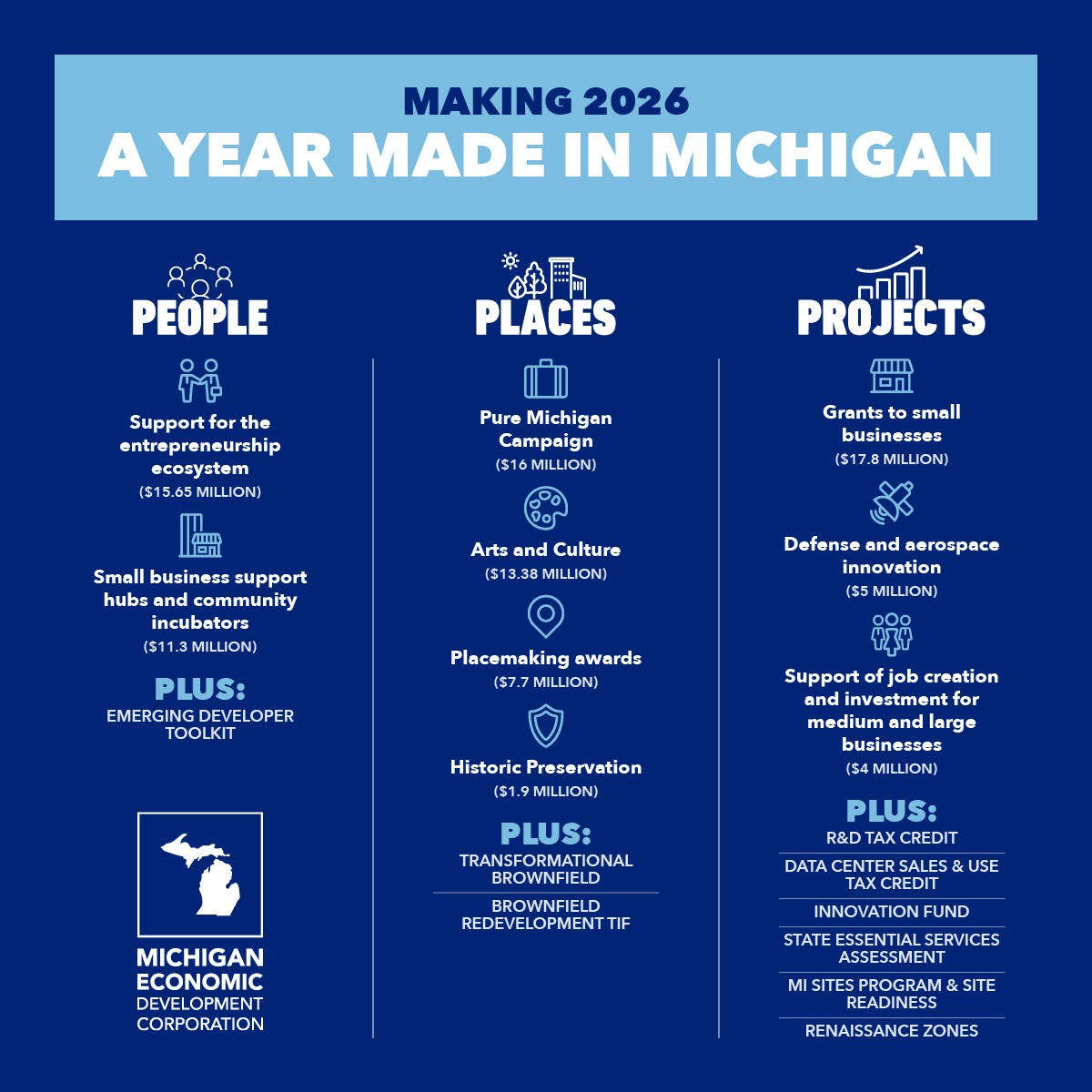Through the FY2026 budget, the MEDC will continue to deliver on the ‘Make It in Michigan’ strategy, supporting Michigan’s people, businesses and communities through its programs and resources.