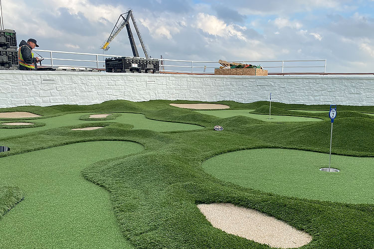 The company’s miniature golf product is made with materials from the United States, pre-built in their warehouse in Traverse City and shipped internationally, accompanied by AGS’ Michigan-based installation crew. AGS also serves domestic clients such as Great Wolf Lodge.