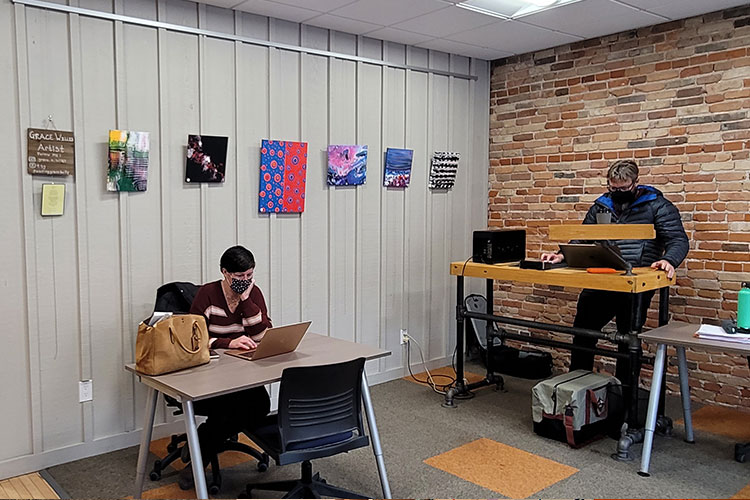 Over the years, Frontal Lobe Coworking has continuously expanded the space, but is now at capacity from a footprint perspective – though not in memberships. Frontal Lobe Coworking now has six private offices, a conference room and coworking spaces on the main and lower levels. Memberships include six-month leases on the private offices that convert to monthly; there is currently a waitlist. For the coworking spaces, Frontal Lobe Coworking offers day passes, Lite (three days/week), Full (24/7 access), Dedicated (24/7 access with private desk) and a student rate. In addition, they offer mailbox memberships and conference room rentals.