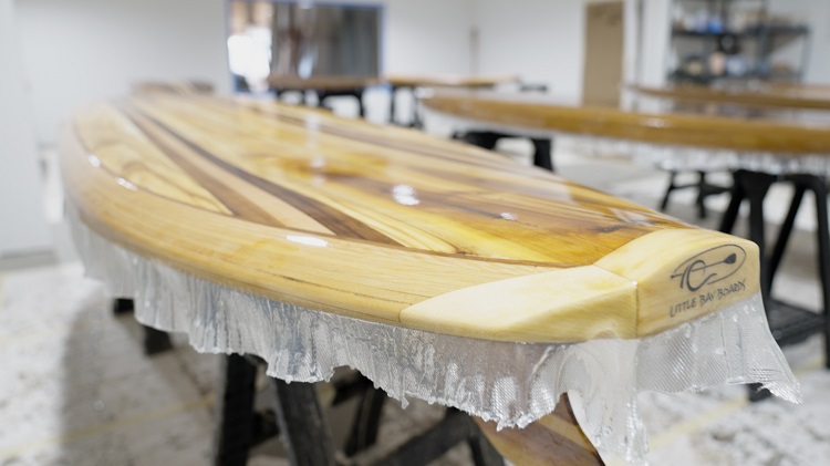 Jason never imagined owning a business, but when the custom paddleboard he made for his daughter in the spring of 2012 picked up local interest, he coined Little Bay Boards. Almost immediately, Jason began producing and selling two boards a month out of the lean-to connected to his garage. Eventually, the demand became so great that he left his carpentry job to pursue building paddleboards full time.