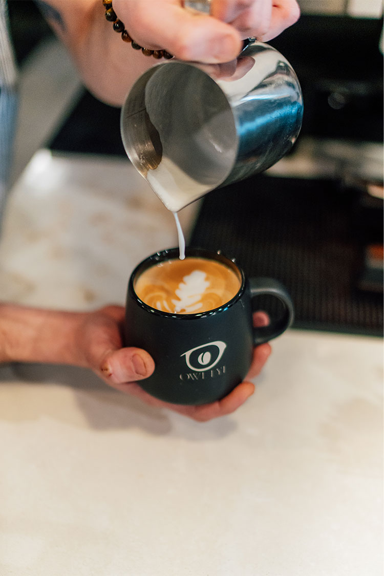 Aaron opened Owl Eye Coffee Roasters as a wholesale roasting business in 2019 and made plans to convert some of the space into a café – an expansion that was made possible in part through support from the Michigan Economic Development Corporation (MEDC) through the Match on Main program, a reimbursement grant program that supports new or expanding place-based businesses.