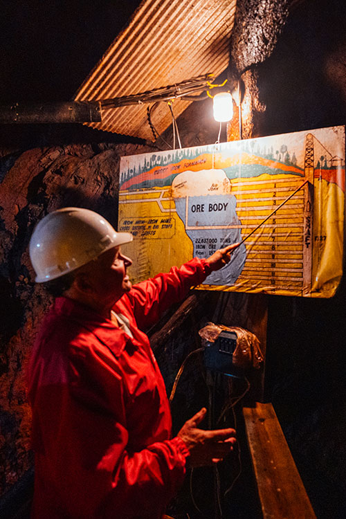 I think it's wonderful, because our iron mine is very unique. And this is our heritage. The miners took 22 million tons of iron ore out of this mine to make steel to build our buildings. I think it's great for us to be able to show our young children today what our forefathers did for us, and everybody should come and see how hard they worked. This mine started in the late 1800s and there was no electricity, so this was all done by hand and candlelight on their helmets. Our big stope that we have, people can't believe how big that is. You get some people who ask, ‘well, was that there?’ No, that was not there – they mined it, they created that. It was originally solid rock!